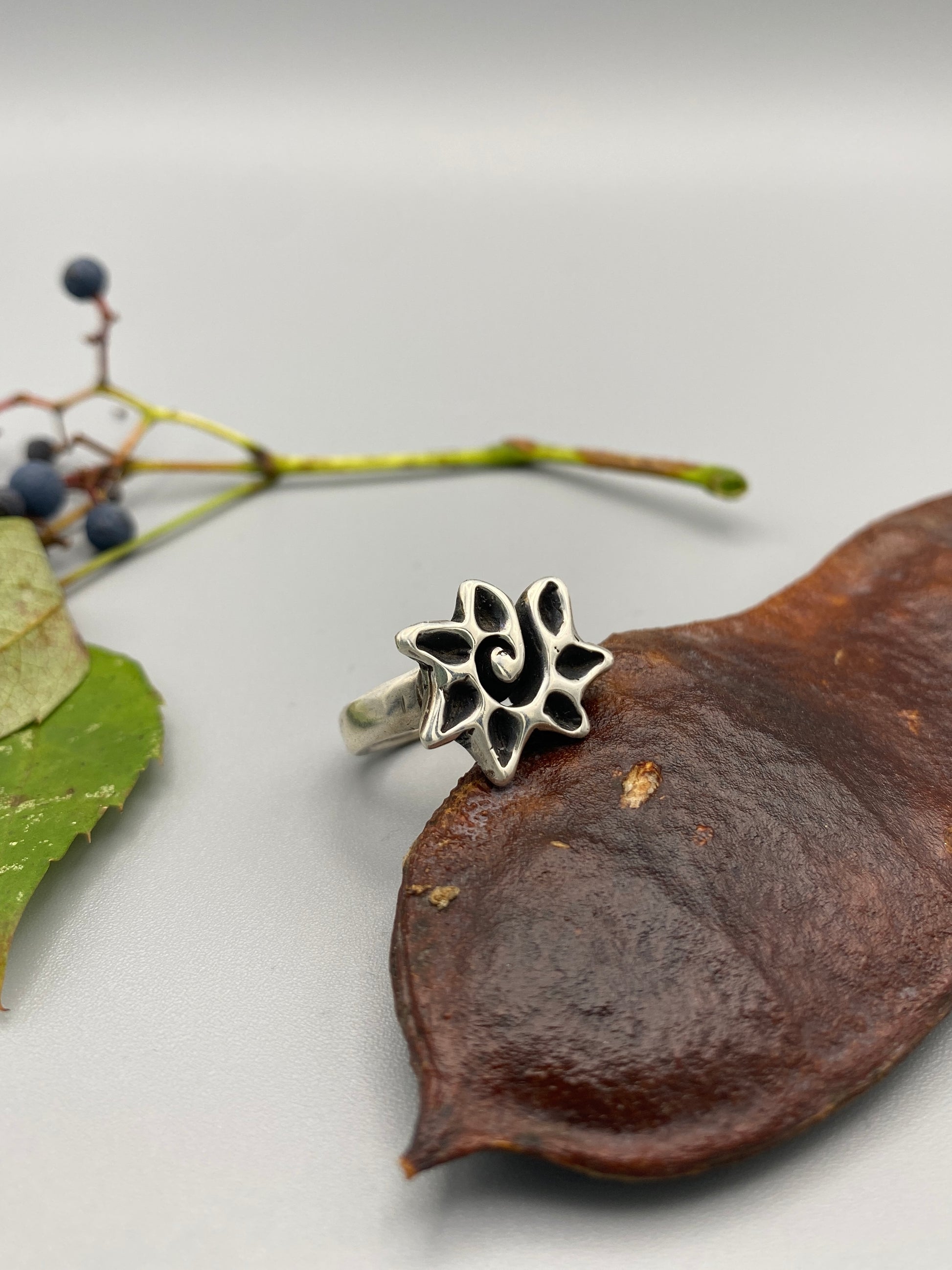 hand carved lost wax cast flower ring